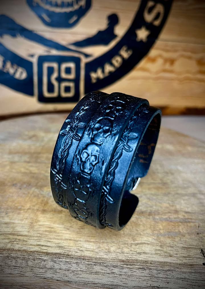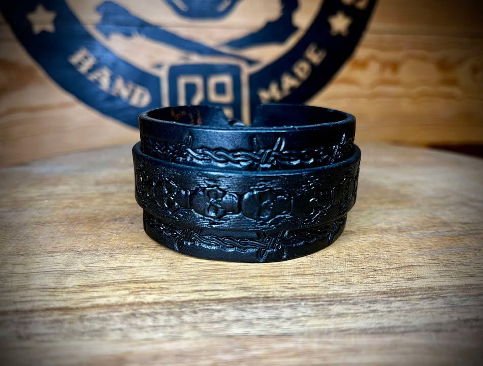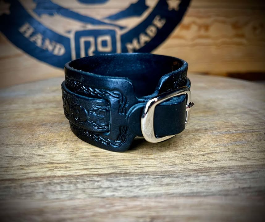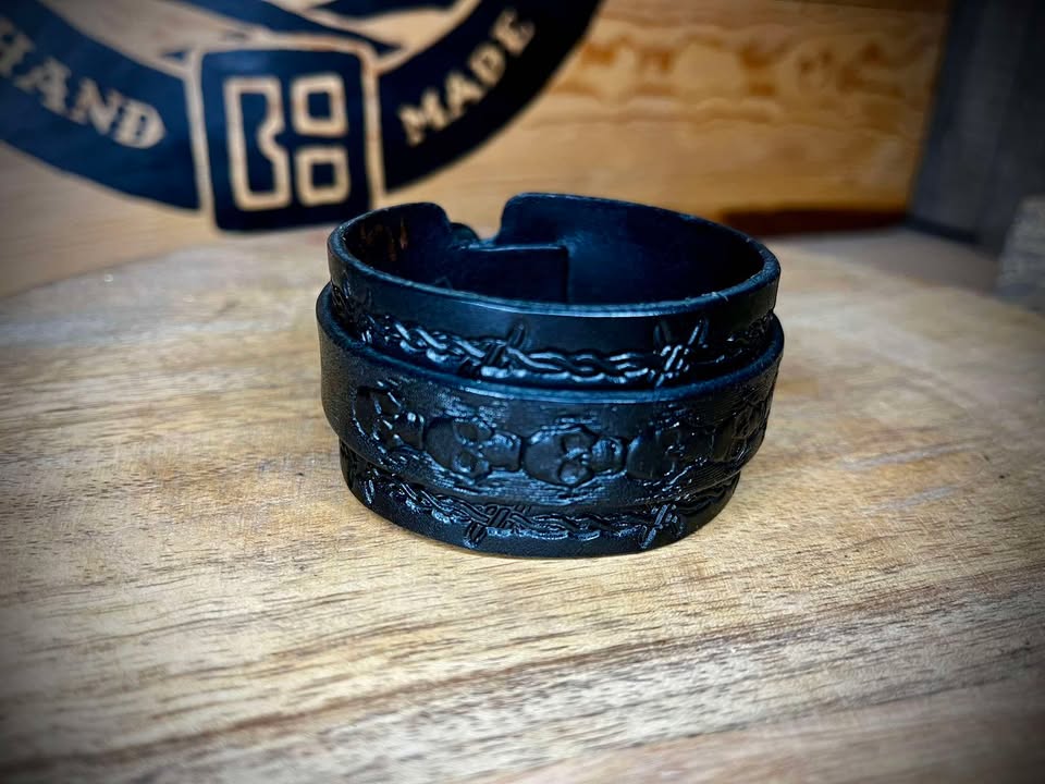 Bransoleta skórzana, ręcznie tłoczona.