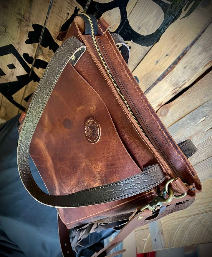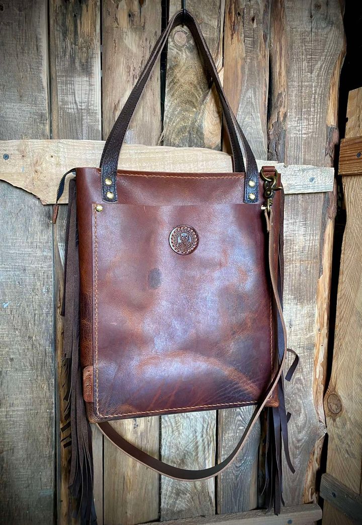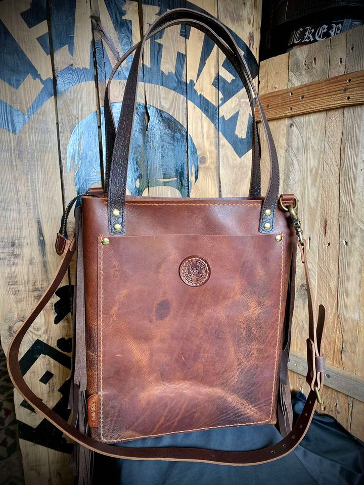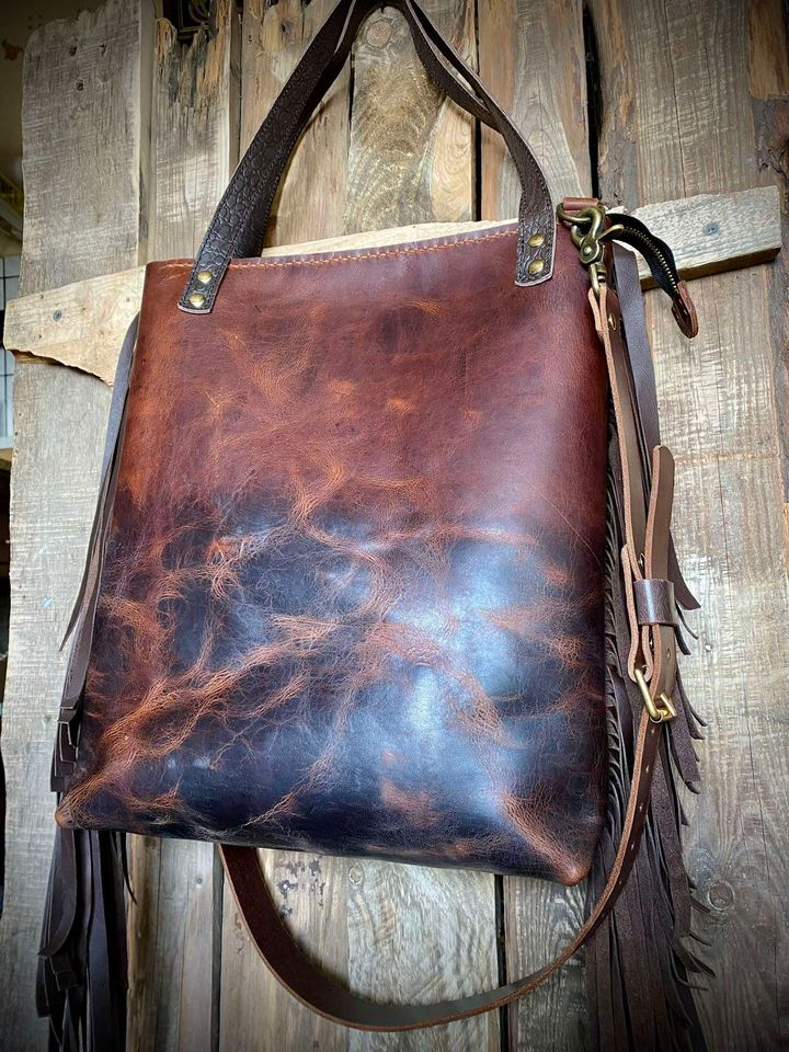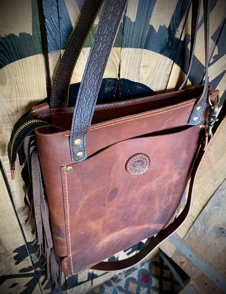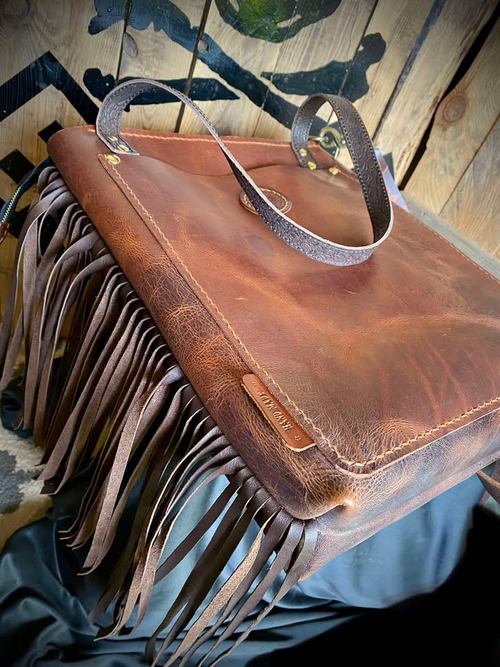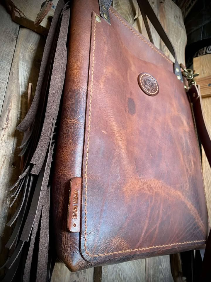 Torebka typu Shoperka ze skóry bydlęcej typu „Crazy Horse”, ręcznie szyta.